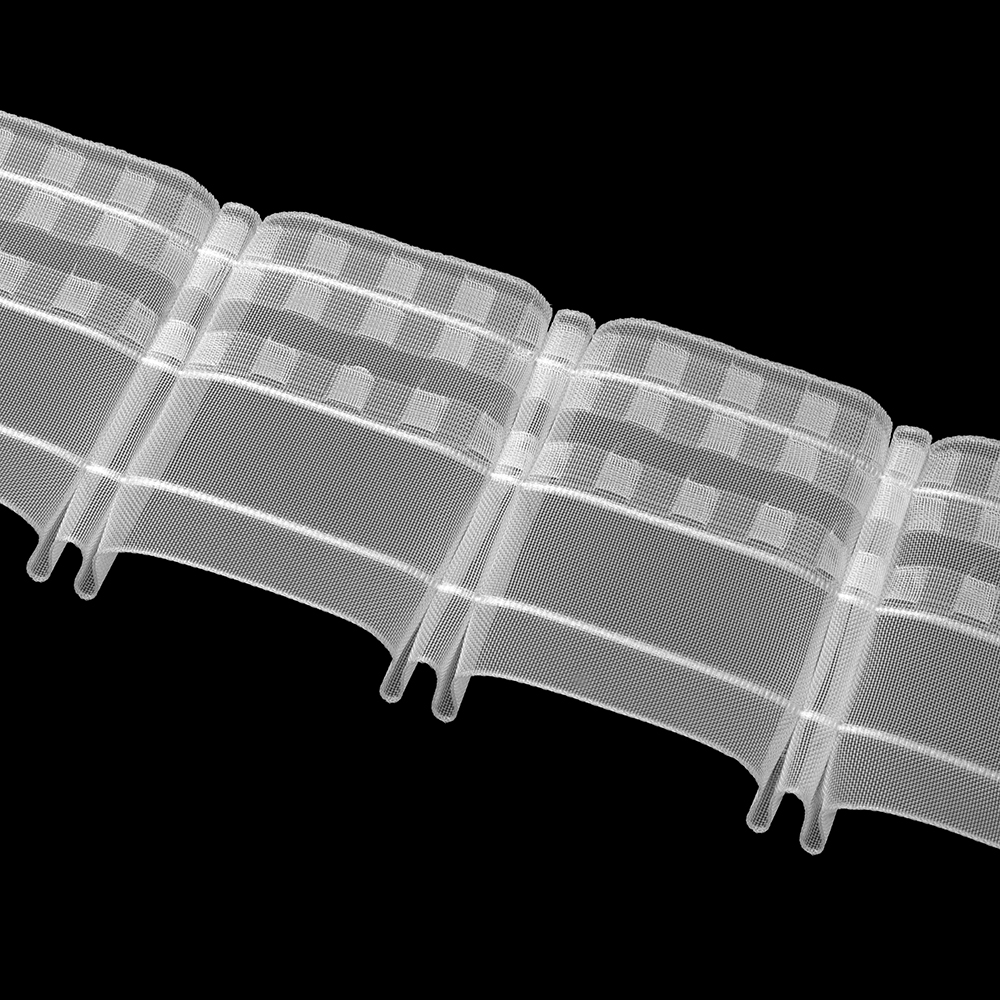 Dank der transparenten Ausführung bleibt das Band praktisch unsichtbar. Dadurch fügt es sich dezent in das Erscheinungsbild des Vorhangs ein. Es eignet sich ideal für Räume, in denen eine zurückhaltende, aber hochwertige Optik gefragt ist – wie etwa Wohnbereiche, Schlafzimmer oder Büros.