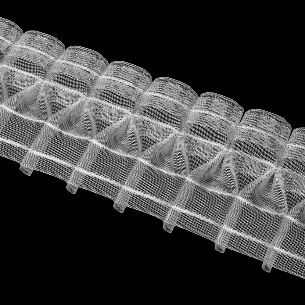 Durch das transparente Material bleibt der Stoff im Vordergrund, während das Band für saubere, gleichmäßige Falten sorgt. Die integrierten Mehrfachtaschen bieten Flexibilität bei der Befestigung – egal ob mit Haken, Gleitern oder Röllchen. So lässt sich das Band leicht anbringen und passt sich unterschiedlichen Aufhängesystemen an.