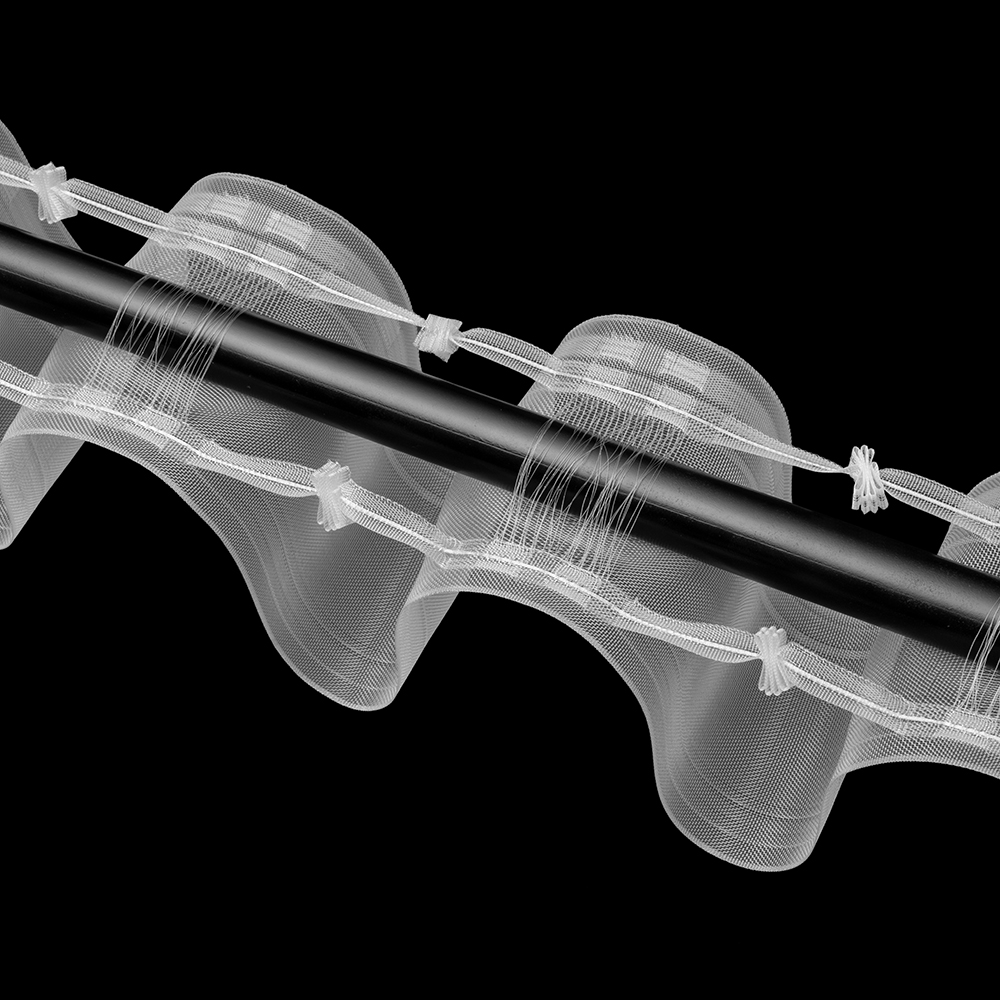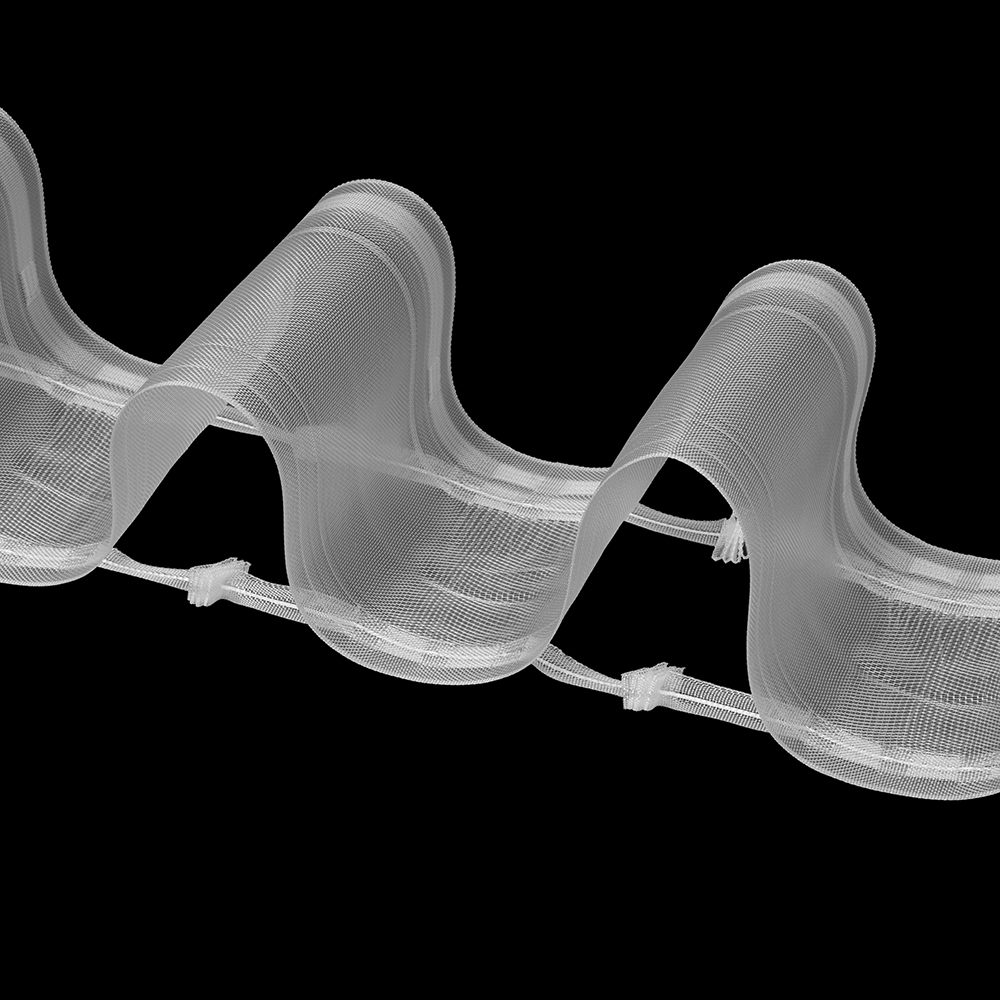 Das Gardinenband BK-005 verbindet eine dezente, transparente Optik mit einer gleichmäßigen Wellenfalten-Form – ideal für moderne Vorhänge mit hochwertigem Look.