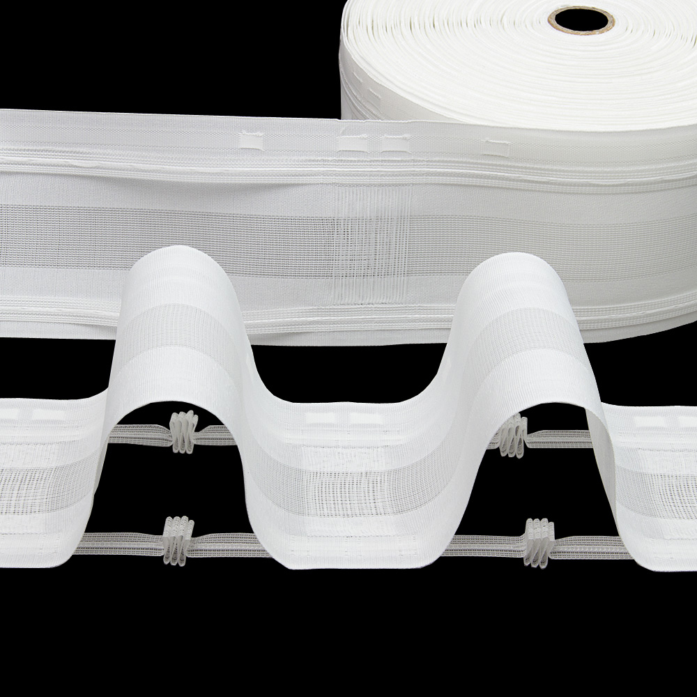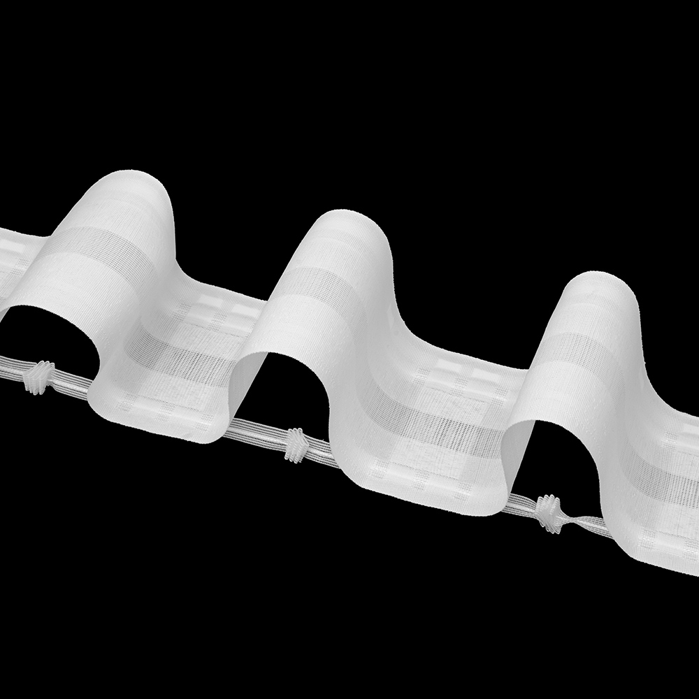 Das Gardinenband BK-15 ist ein hochwertiges Wellenfaltenband in 100 mm Breite mit einem Faltenverhältnis von 1:2.0. Es wurde speziell entwickelt, um gleichmäßige, harmonische Wellen zu erzeugen – perfekt für moderne Wohnräume, Hotels und repräsentative Fensterflächen. Durch den neutralen Weißton lässt sich das Band vielseitig kombinieren und passt zu vielen Stoffarten.